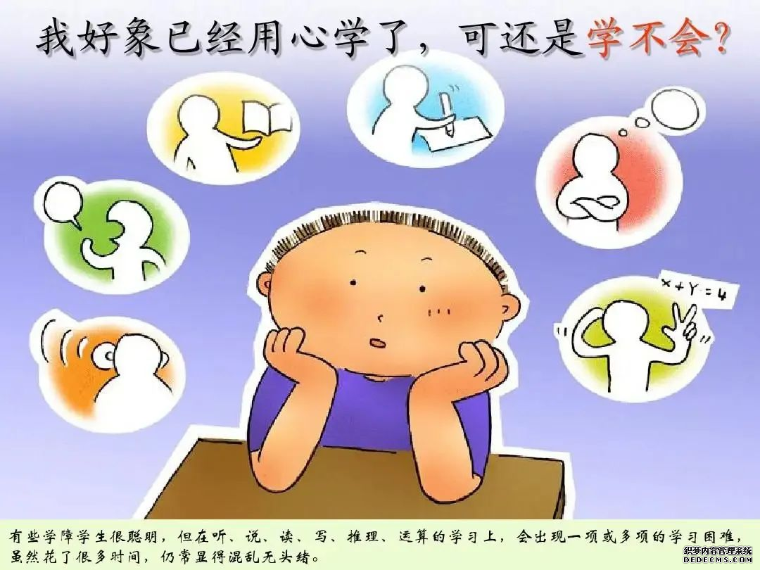 “学习障碍”包括阅读障碍,书写障碍、数学障碍等,这些孩子虽然智力正常,但在某项特定的学习能力方面发育落后,影响到相应的学科成绩。